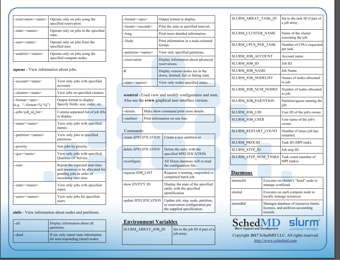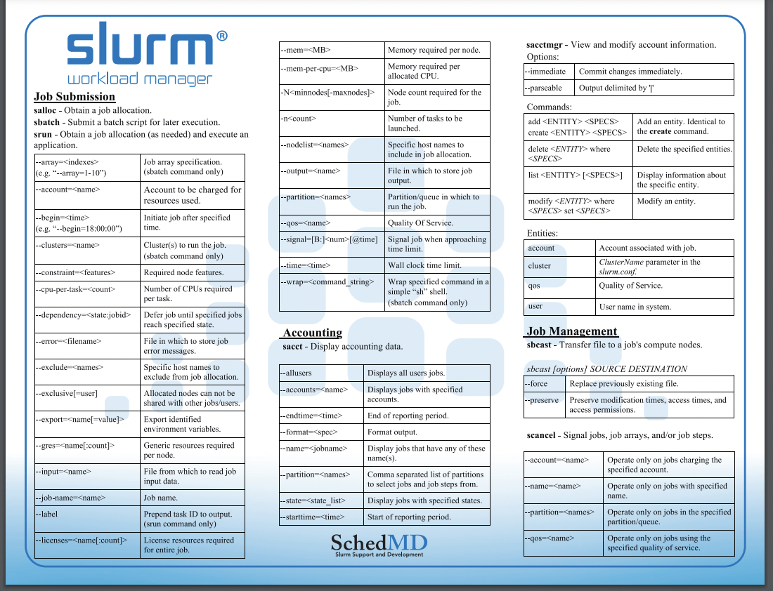 Slurm provides resource management for the processors allocated to a job, so that multiple job steps can be simultaneously submitted and queued until there are available resources within the job’s allocation.