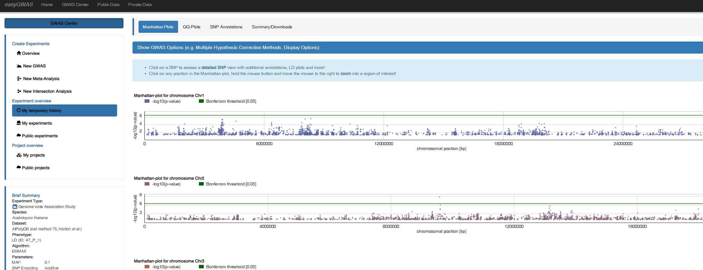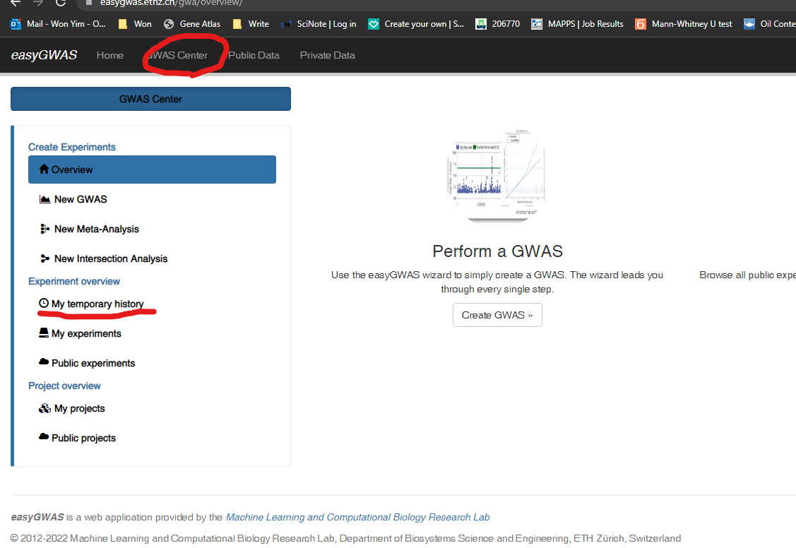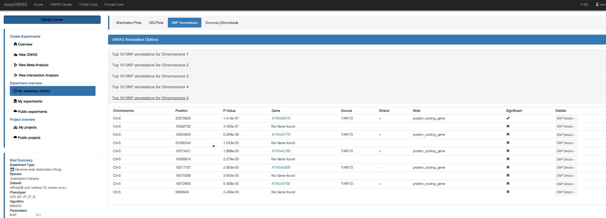 Now all GWAS are submitted. We can monitor the current status of our GWAS at My temporary history. This view is updated automatically and we will get a notification via e-mail when the computations have finalized. Will take 10 min. Go and drink water.