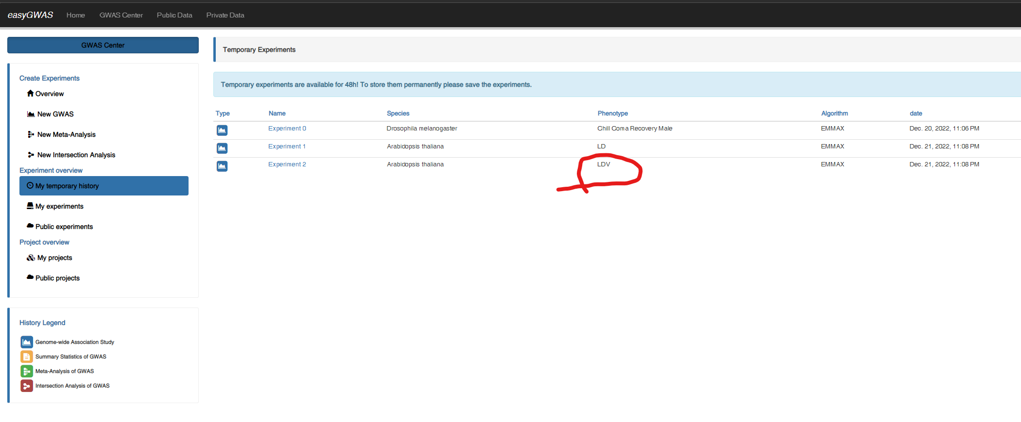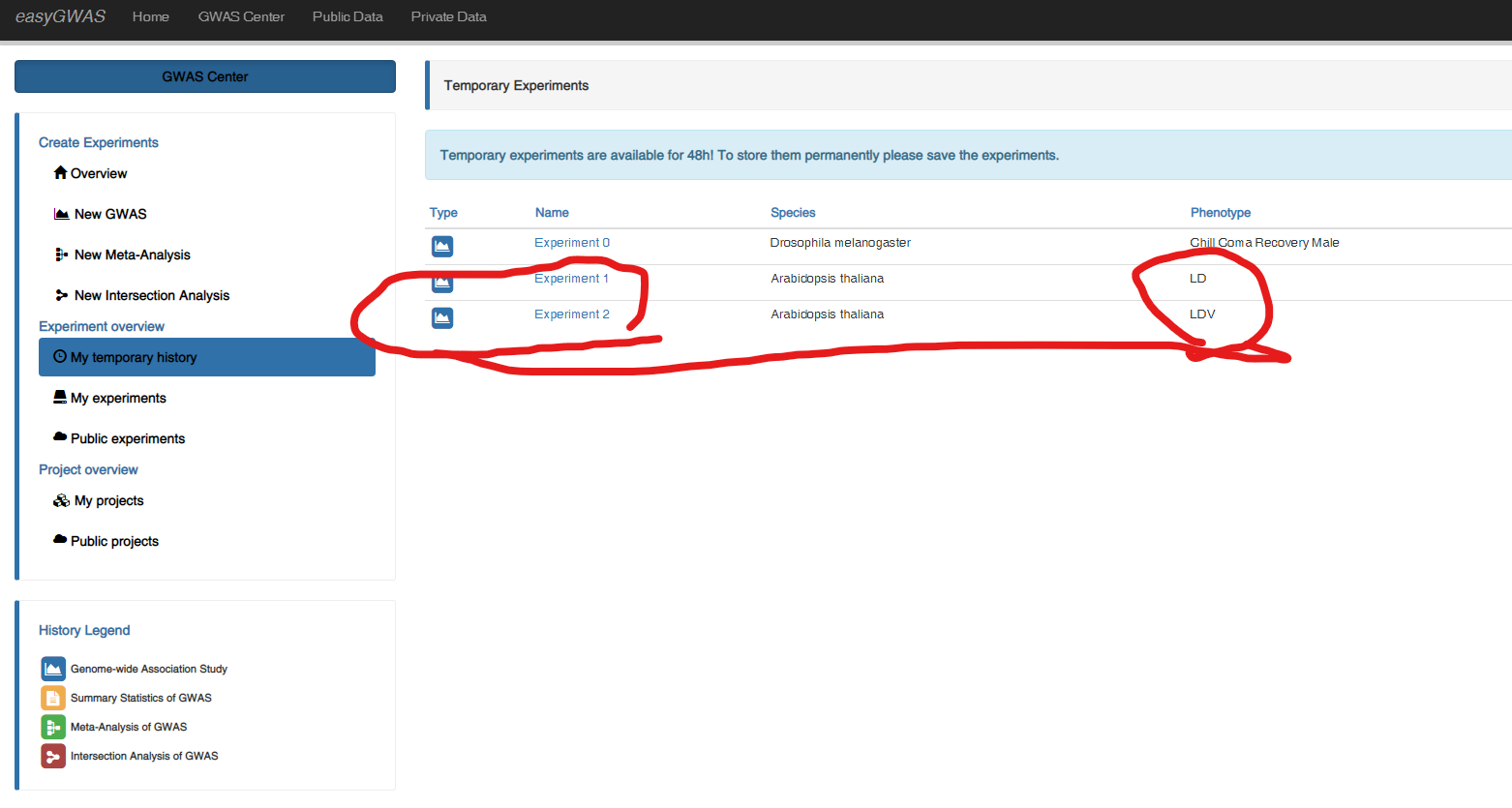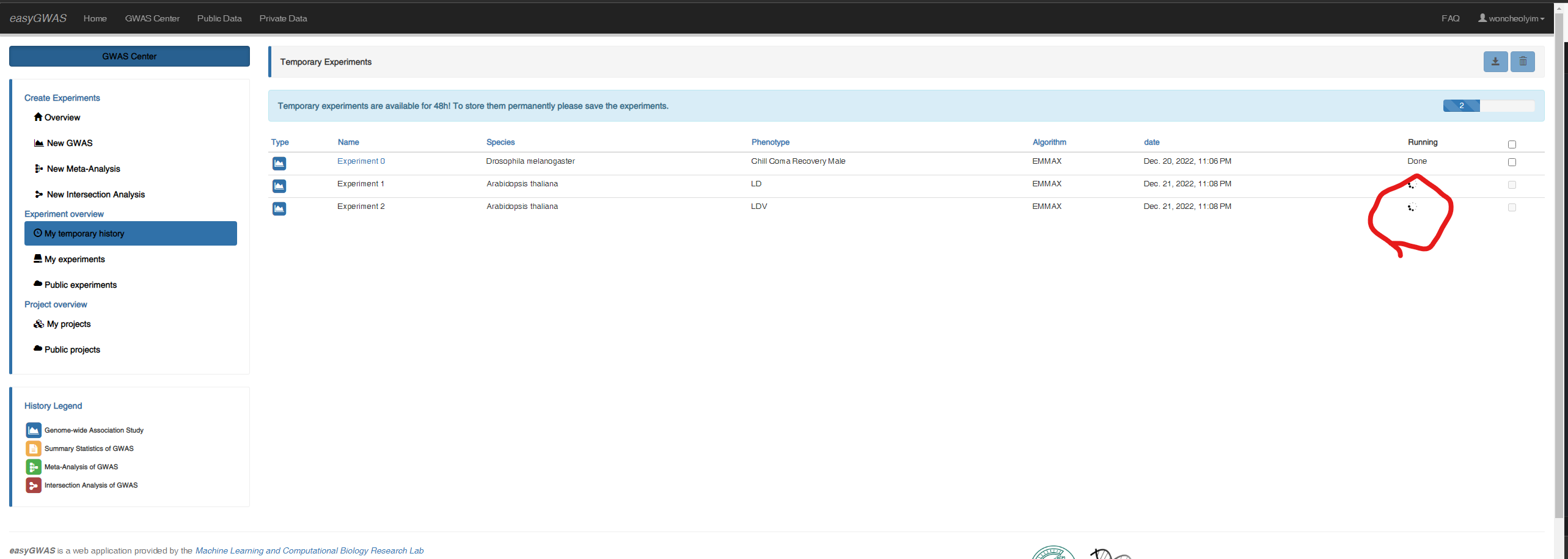 Now all GWAS are submitted. We can monitor the current status of our GWAS at My temporary history. This view is updated automatically and we will get a notification via e-mail when the computations have finalized. Will take 10 min. Go and drink water.