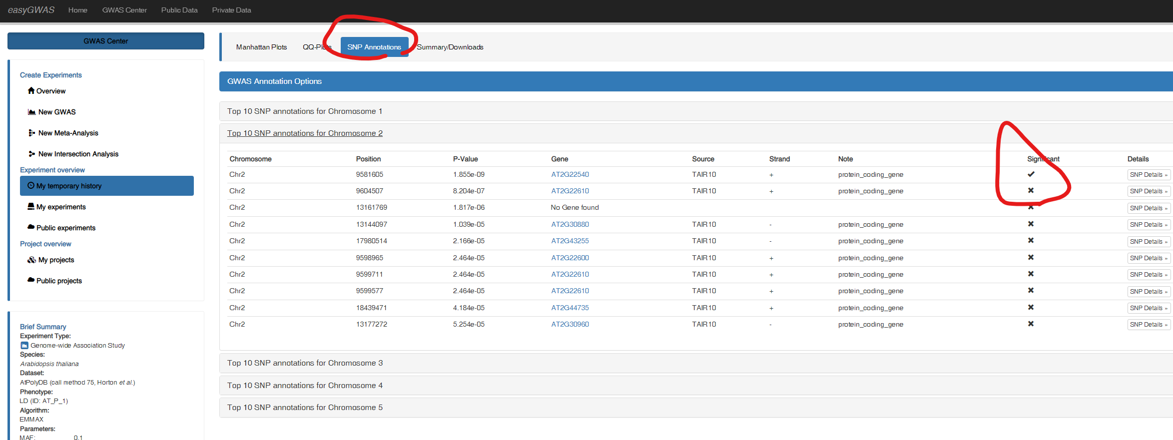 Back to Manhattan plot, click small dot above Bonferroni thresdhold in Chromosome 2